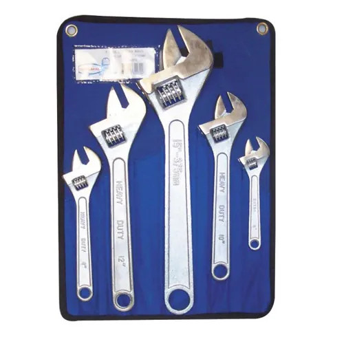Product Description 5pc Adjustable wrench shifter set 532272 Features 5pc set 6" (150mm), 8" (200mm), 10" (250mm), 12" (300mm), 15" Chrome Finished Tool Wrap included
