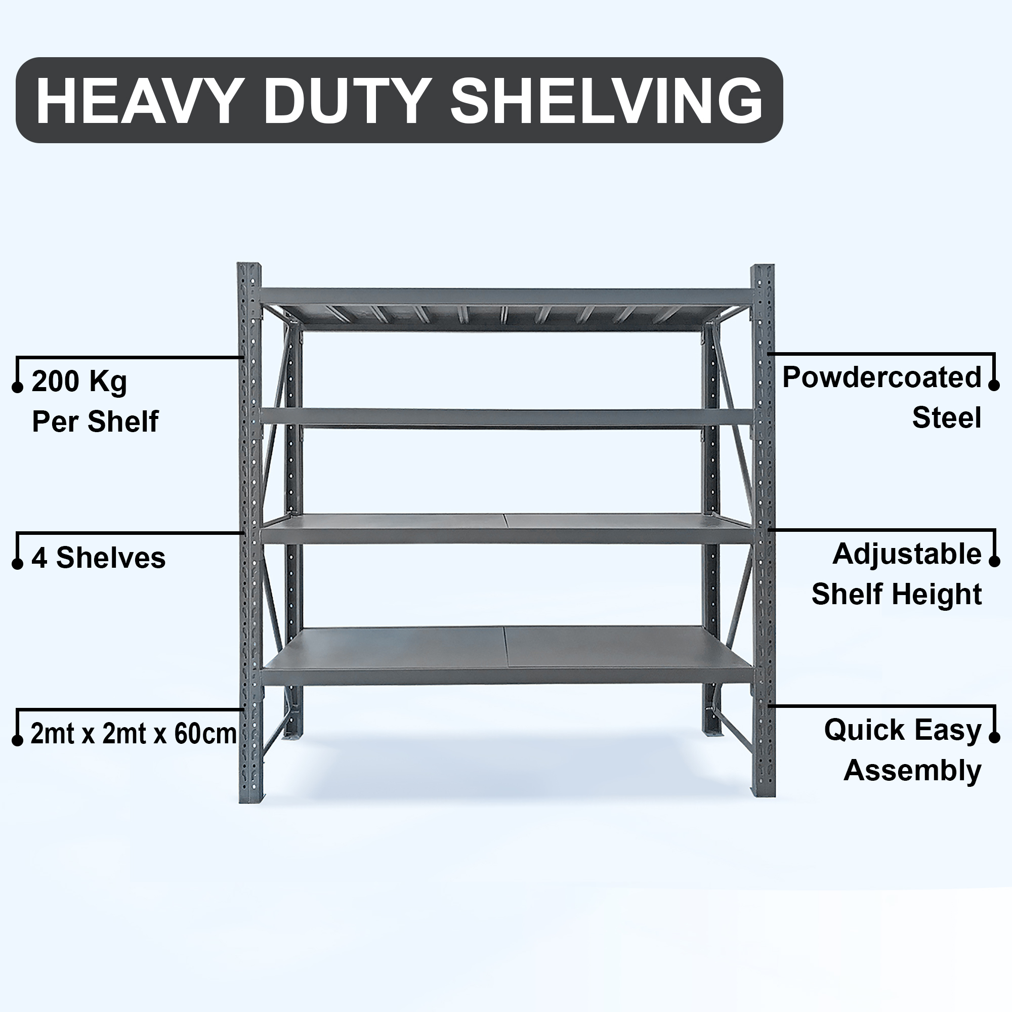 SHELVING HEAVY DUTY 2mt wide
